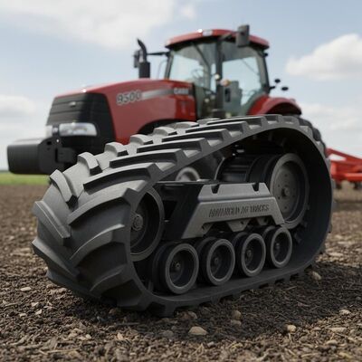 Pistas de borracha de fórmula avançada, especificamente concebidas para o CASE IH 9300 quando a máquina é aplicada como raspadora.assegurando a durabilidade ao mesmo tempo que proporciona uma tração superior em condições de solo difíceis.